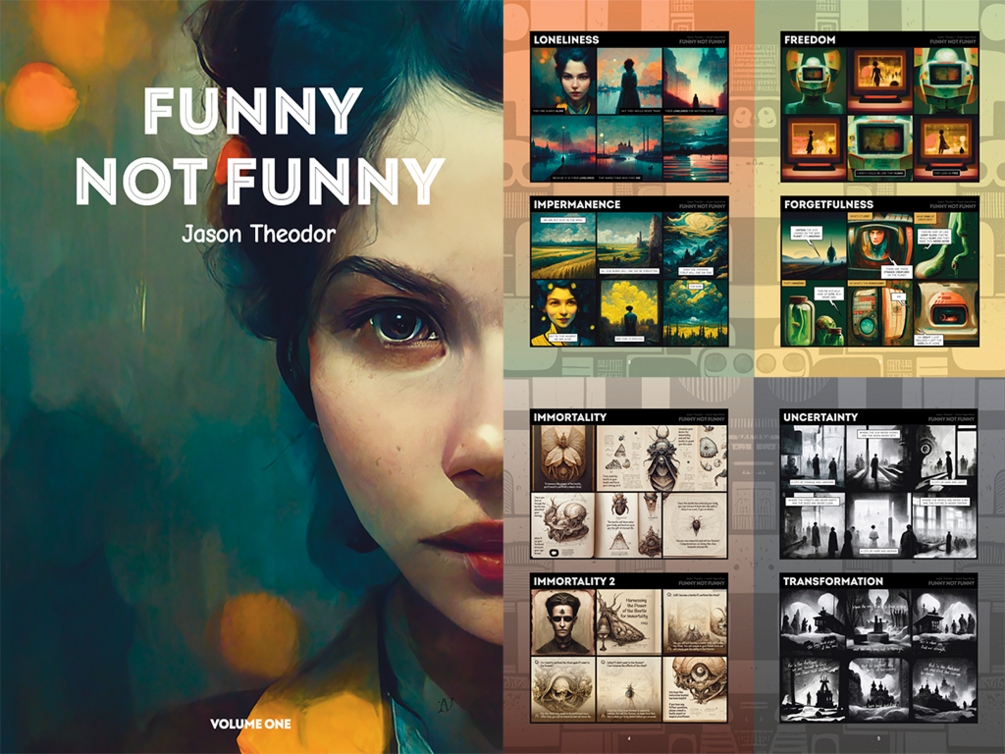 Funny Not Funny is an artificial comic strip mostly made by robots for humans. It was written and drawn by generative algorithms, with inspirational prompts from the author, Jason Theodor, who then put the comics together.